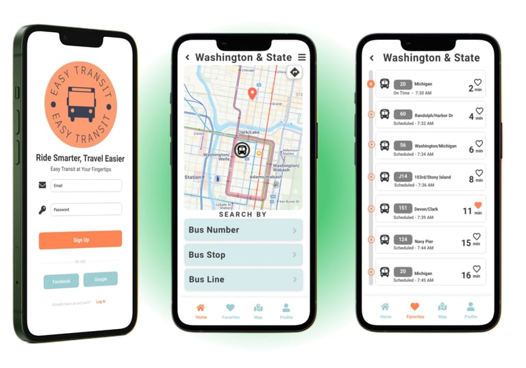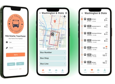 This mobile app includes real-time bus tracking and help users navigate through the city of Washington & State by finding the nearest bus stops, view bus schedules, and plan their routes.