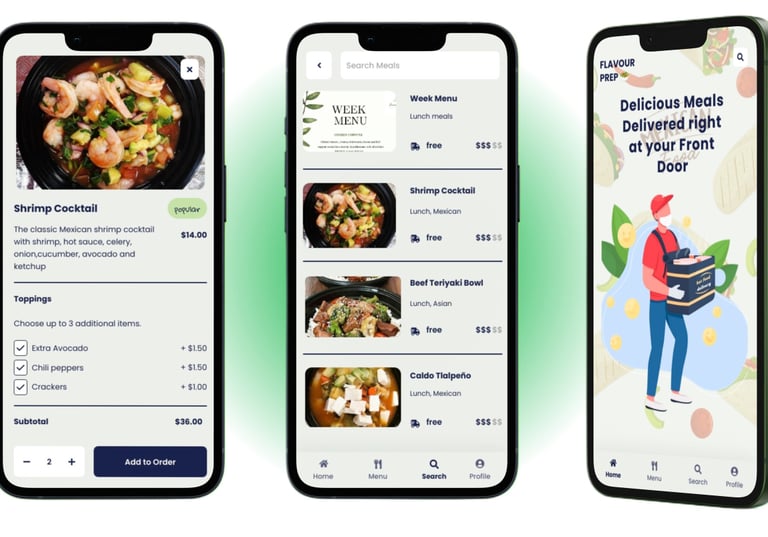 Mobile app designed for my client's meal prep delivery business offering authentic Mexican cuisine. The app allows customers to order weekly meals and track their orders in real time.